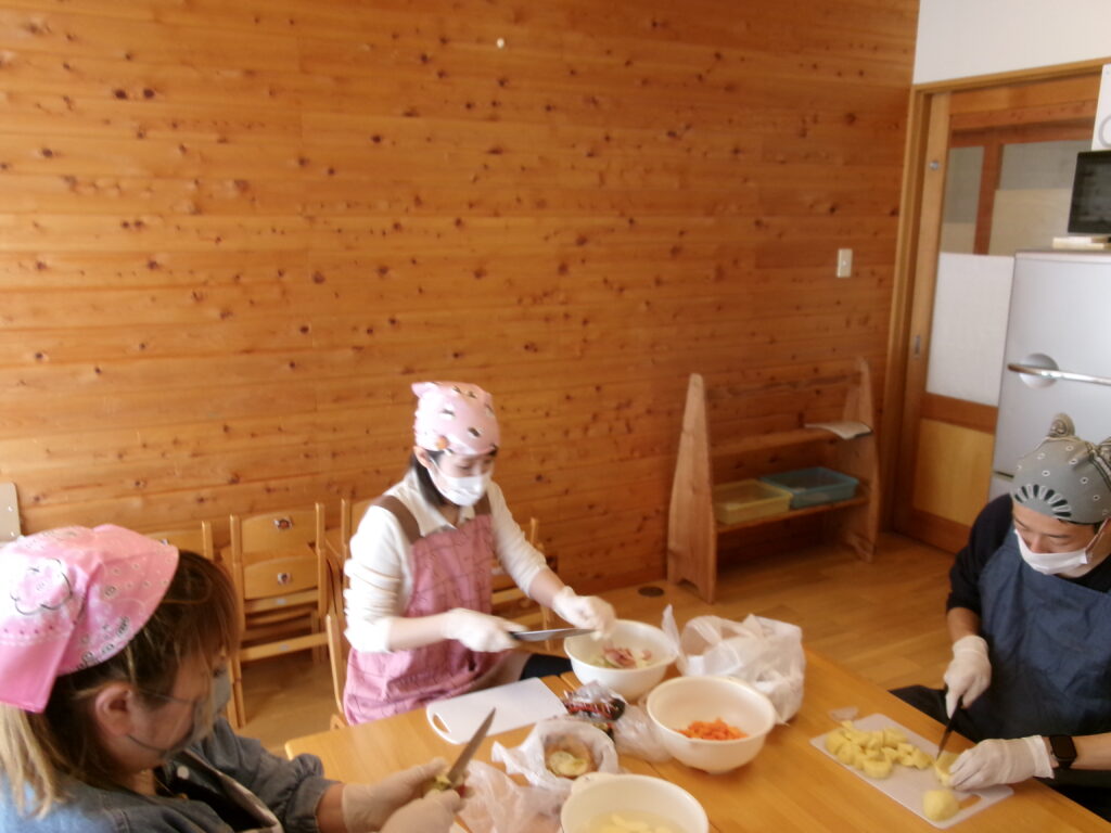 保護者さん同士でお話をしたり、お子さんの様子を見ていただいたり、保護者さんに昼食を作っていただいたり…と内容盛りだくさんでした(^^)
