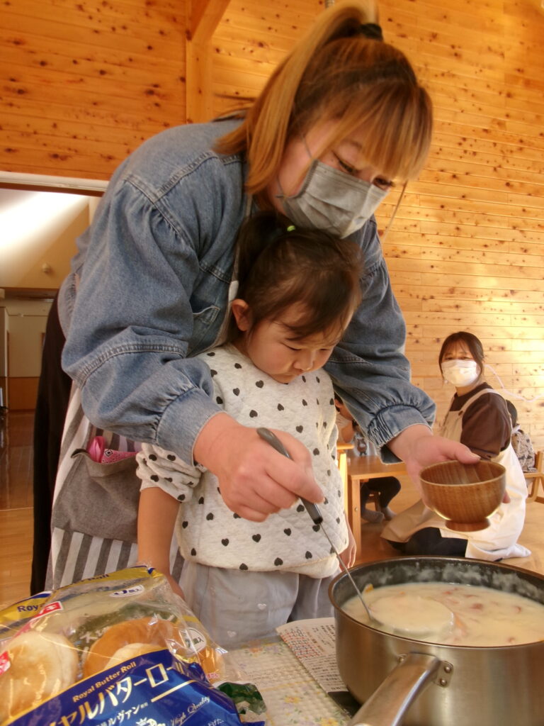 ご家庭ではあまりシチューを食べないお子さんも食べることができたり、苦手な野菜も食べることができたりと、新たな発見もあり、