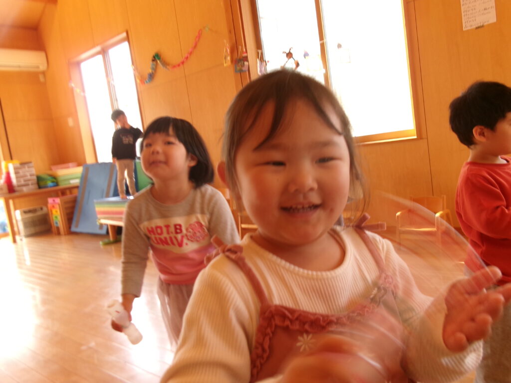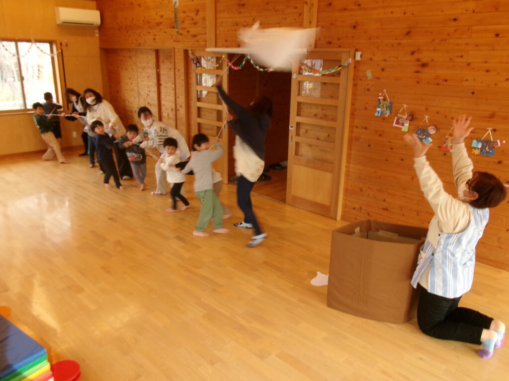 ポーン!!とプレゼントが飛んでいるこの躍動感のある写真は、『大きなかぶ』のクリスマスver.の様子です☺