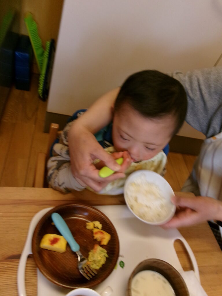 指導員と一緒に自分で食べる練習をしながら、モグモグよく噛んで食べる事ができました☆