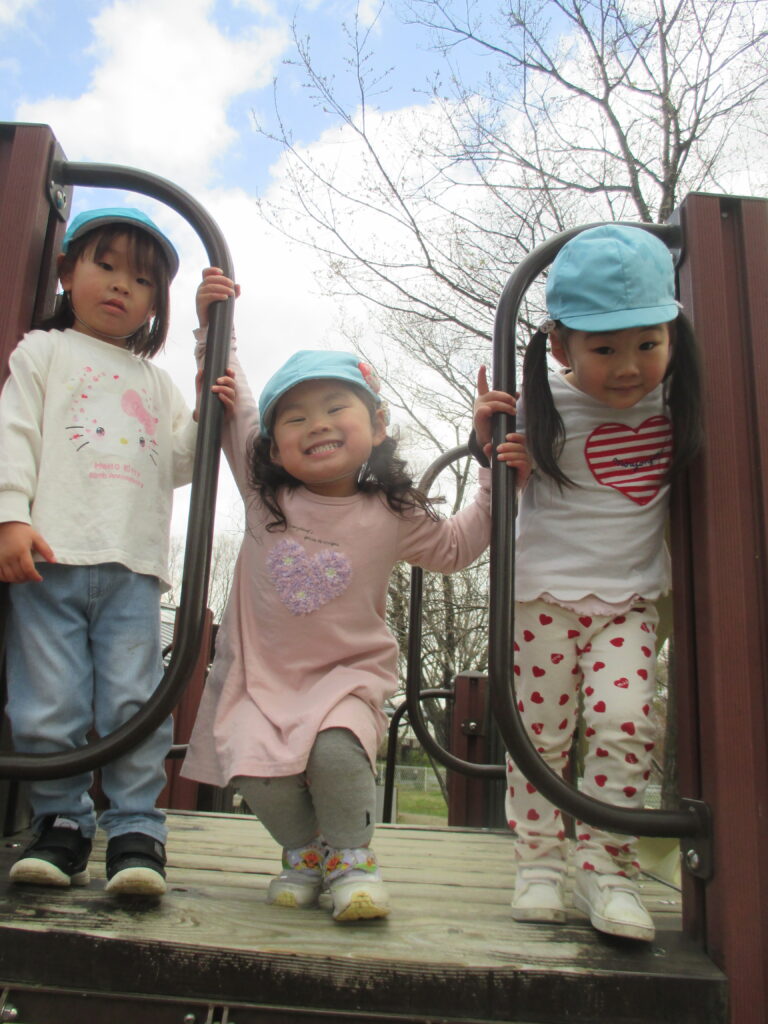 くまぐみ(3歳児)  アスレチックの上から「やっほ~!」
