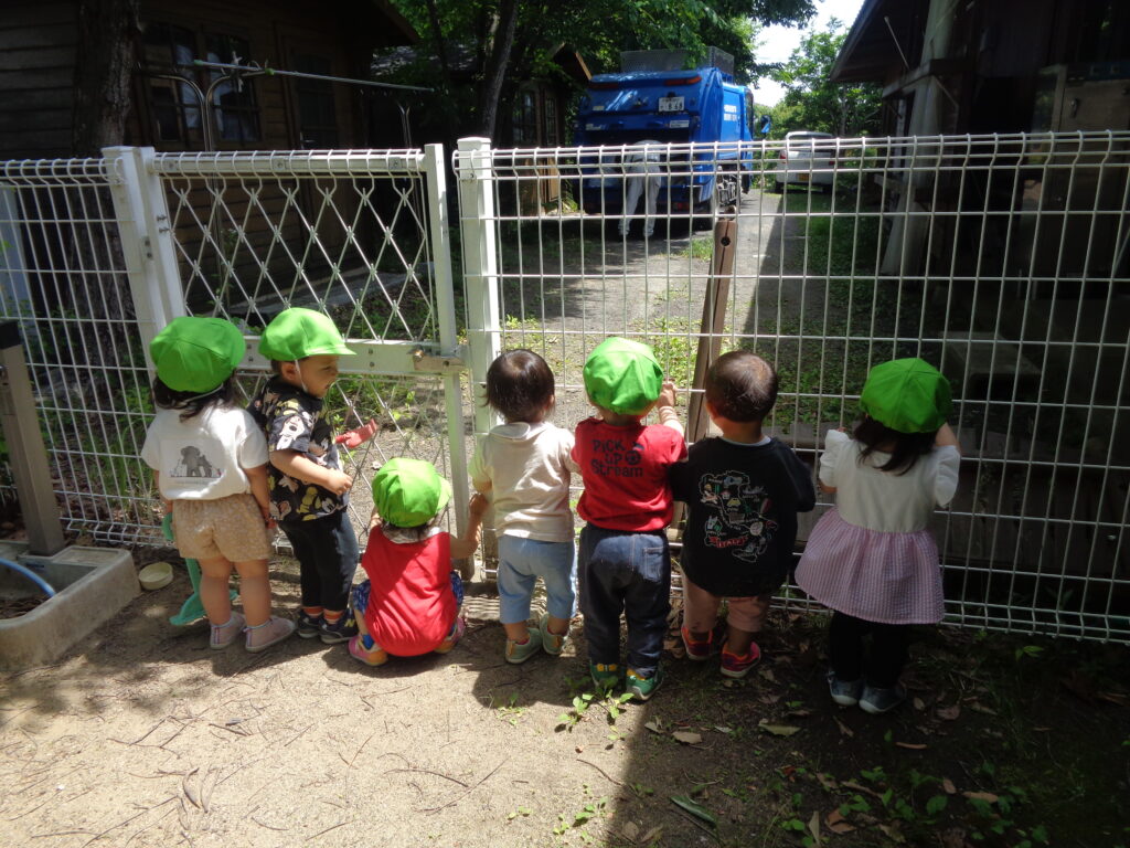 あひるぐみ(1歳児) ごみ収集車かっこいいね!