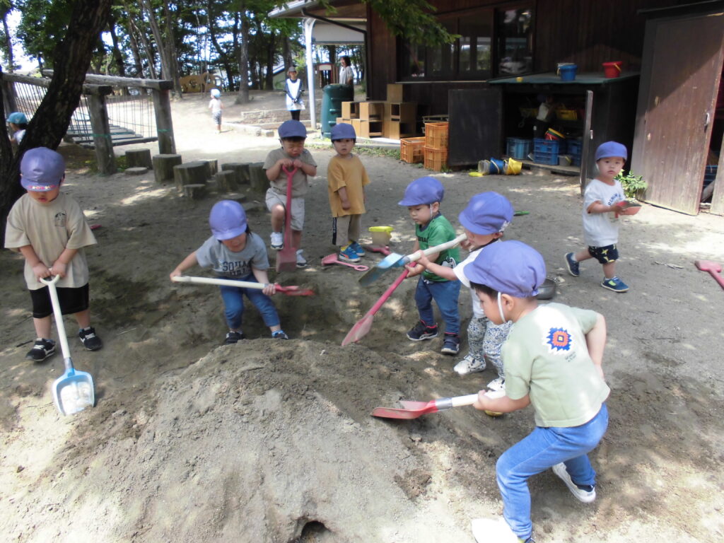 うさぎぐみ(2歳児) みんなで大きなお山を作ったよ!
